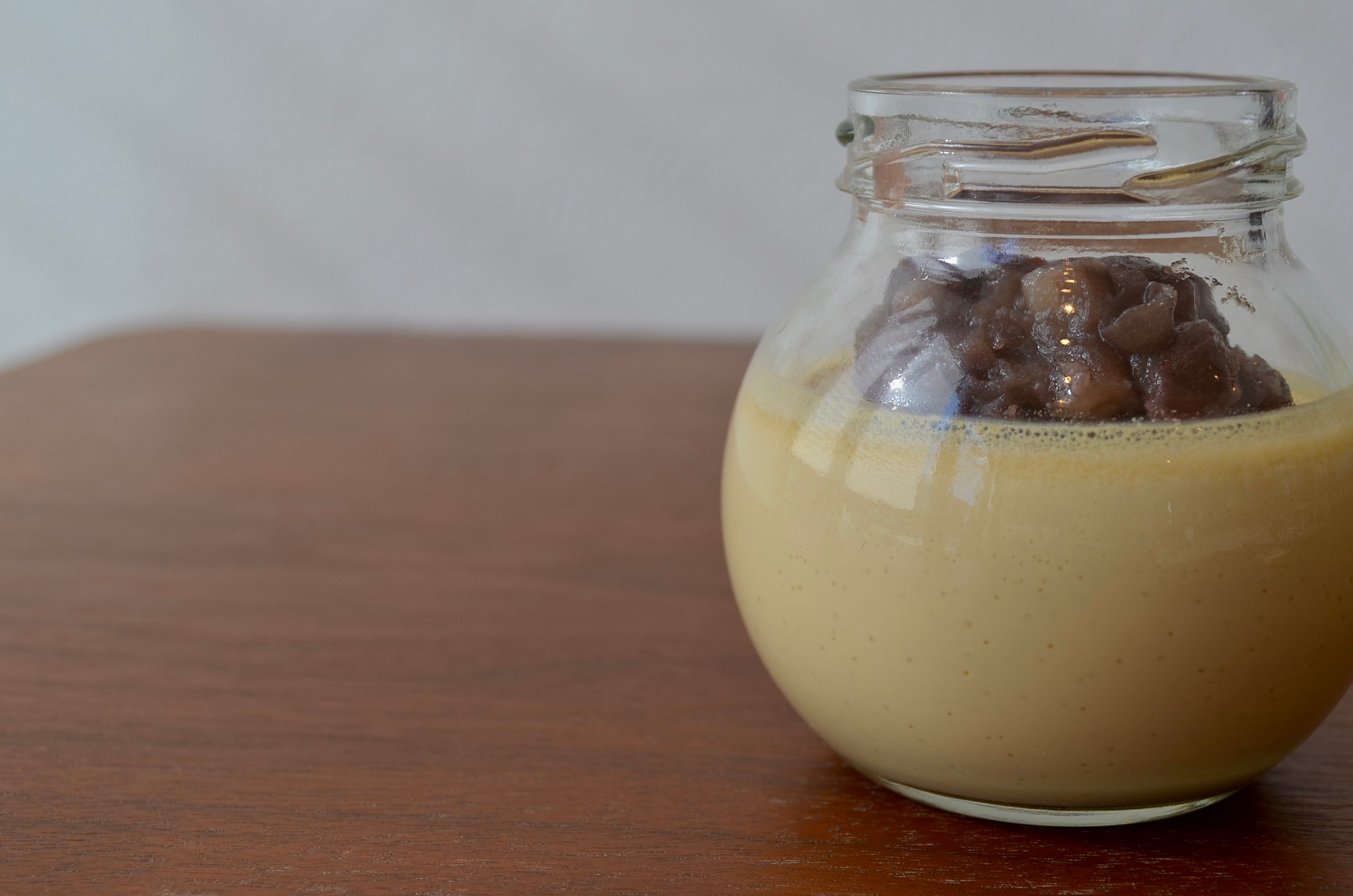黒糖あずきプリンは、沖縄産黒糖を使用した優しいコクと風味が感じられるトロッとしたプリンに、自家製の甘さ控えめ粒あんを乗せて食べる和風プリンです。