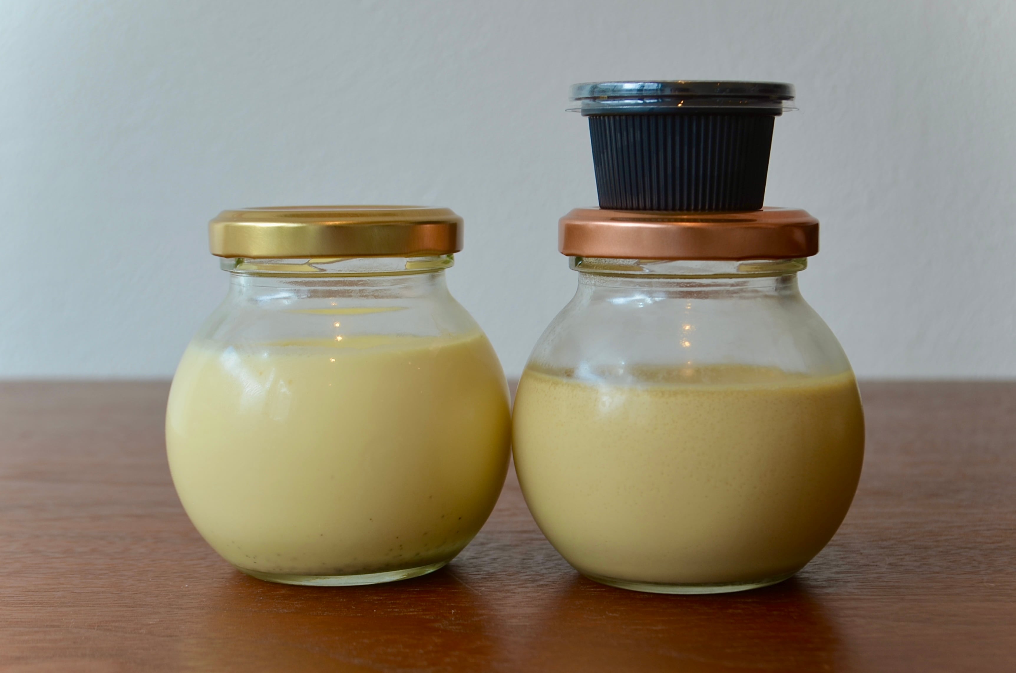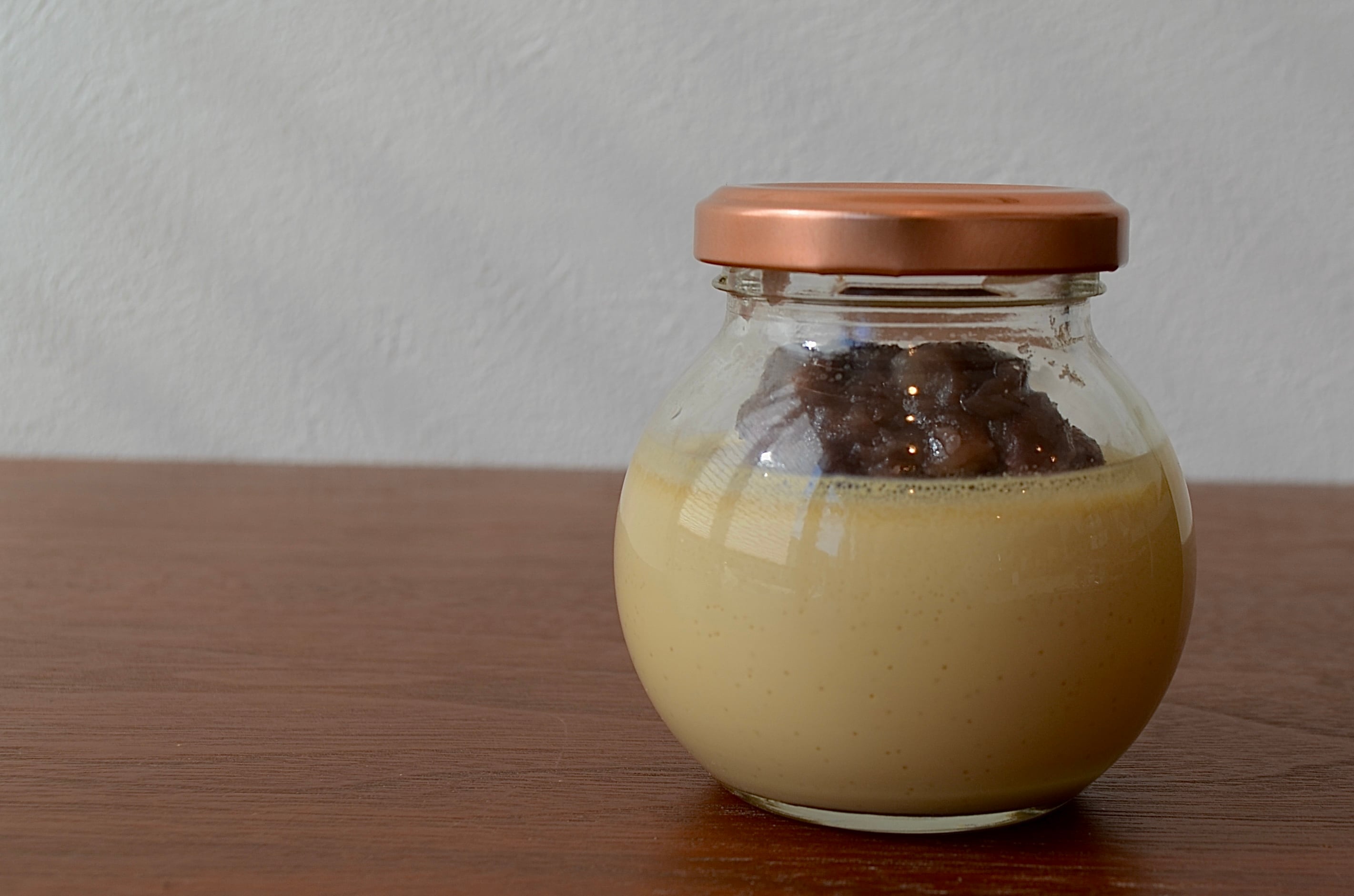 別添えの苦めに焦がしたカラメルソースをお好みでかけてお召し上がり下さい。